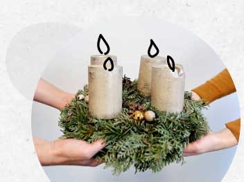 Die Zweige und Äste werden ordnungsgemäß entsorgt, Kerzenreste eingeschmolzen und zu neuen Kerzen gegossen. Dekorationsmaterialien werden gereinigt, aufbewahrt und erneut verwendet. Der Strohkranz dient als Basis für neue Adventkränze zu Weihnachten 2026. So geht einfache Entsorgung mit echtem Mehrwert.