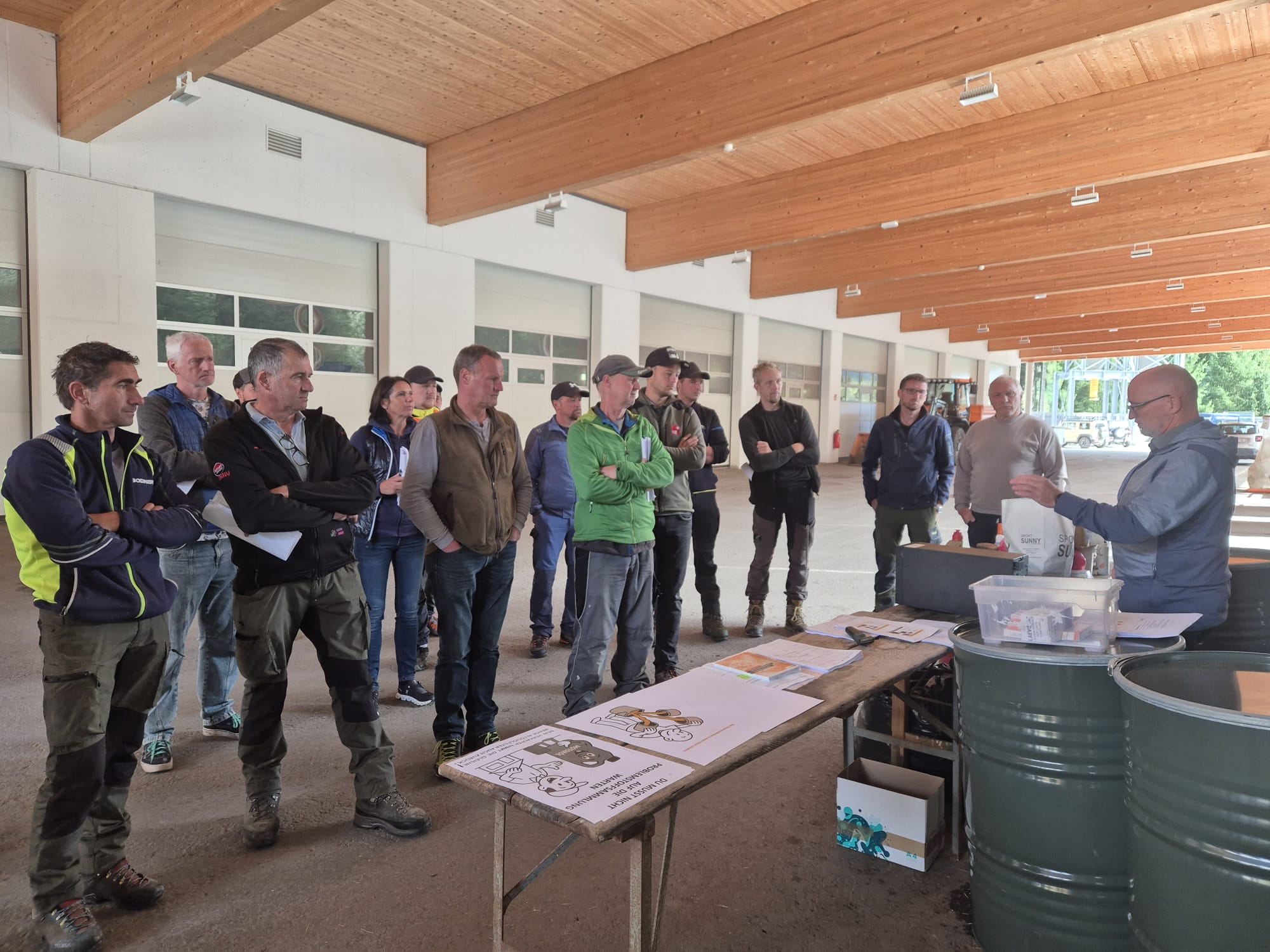 Bevor die mobilen Problemstoffsammlungen im Oktober wieder durchstarten, fand am Recyclinghof Erlbrücke (Anras/Abfaltersbach) eine praxisnahe Schulung für Mitarbeiter:innen der Sammelstellen statt.